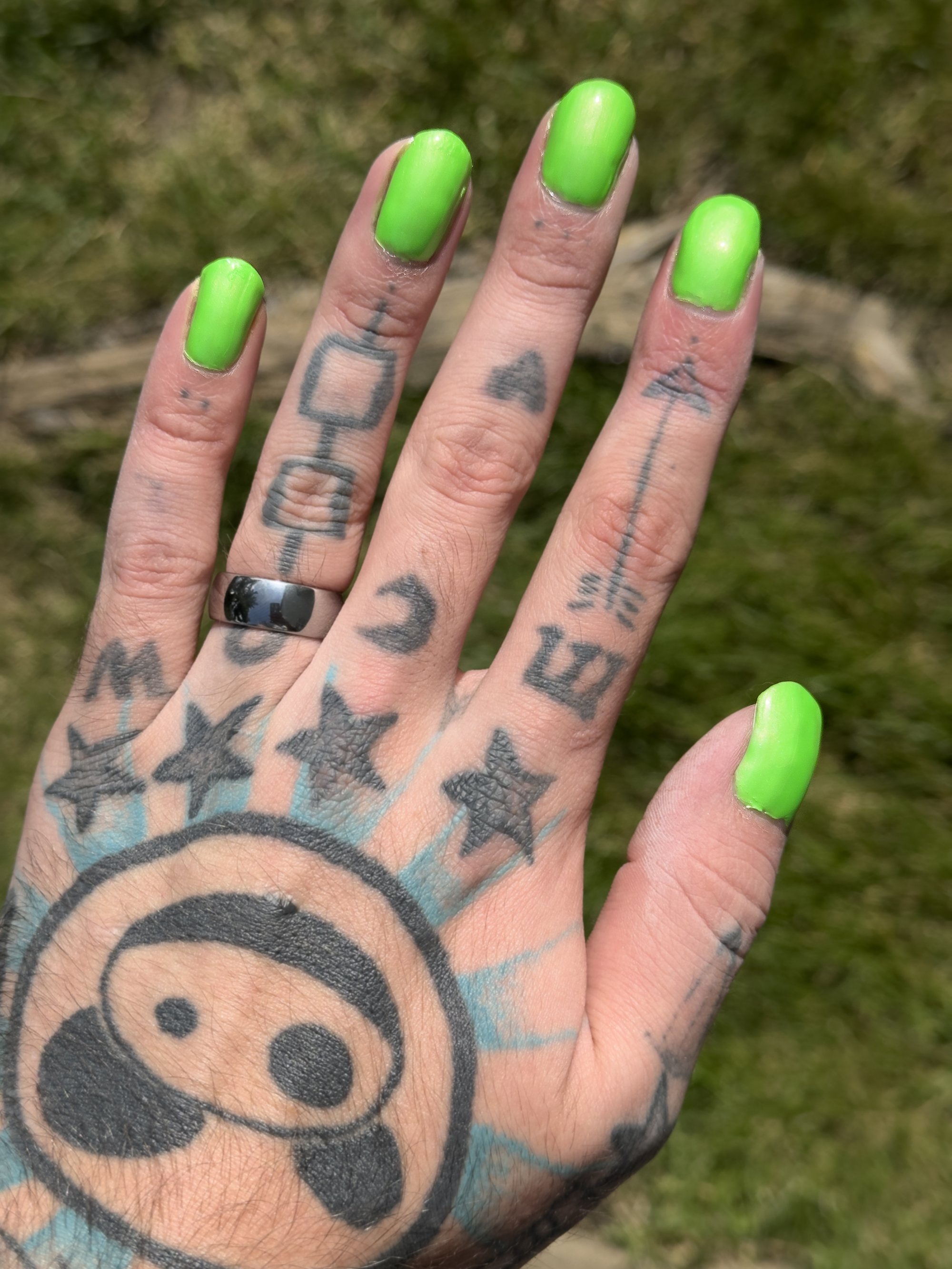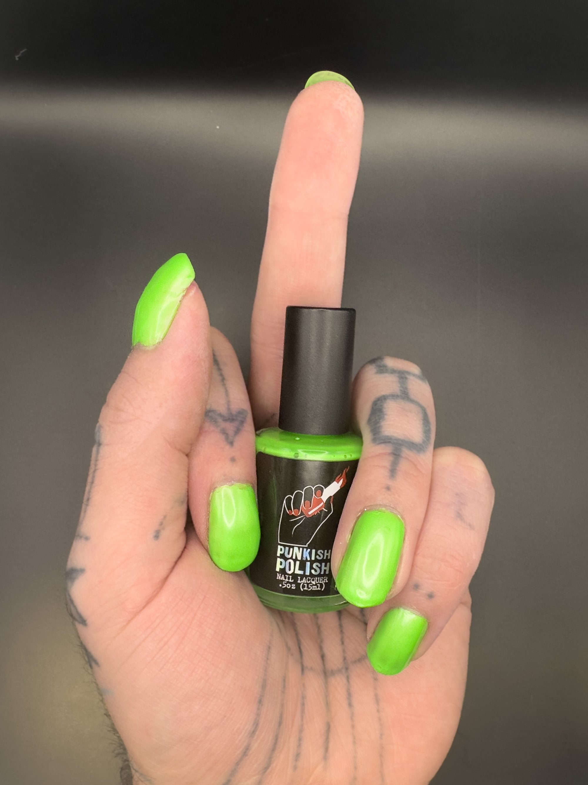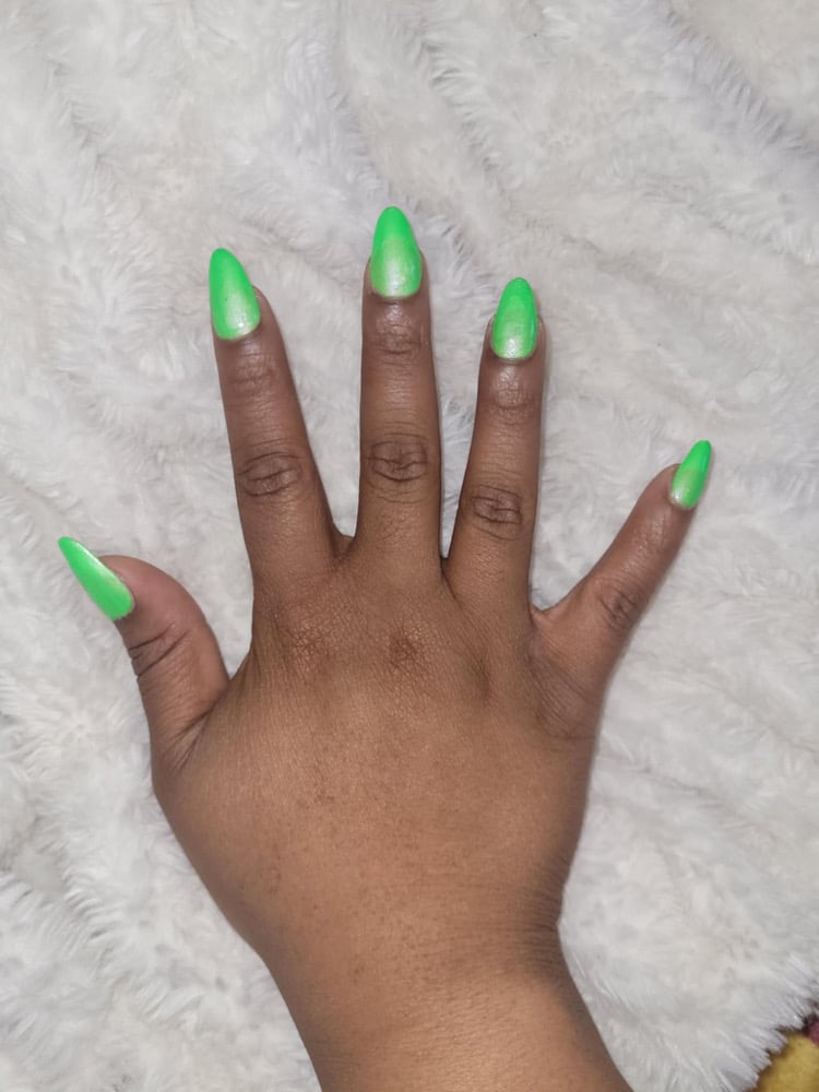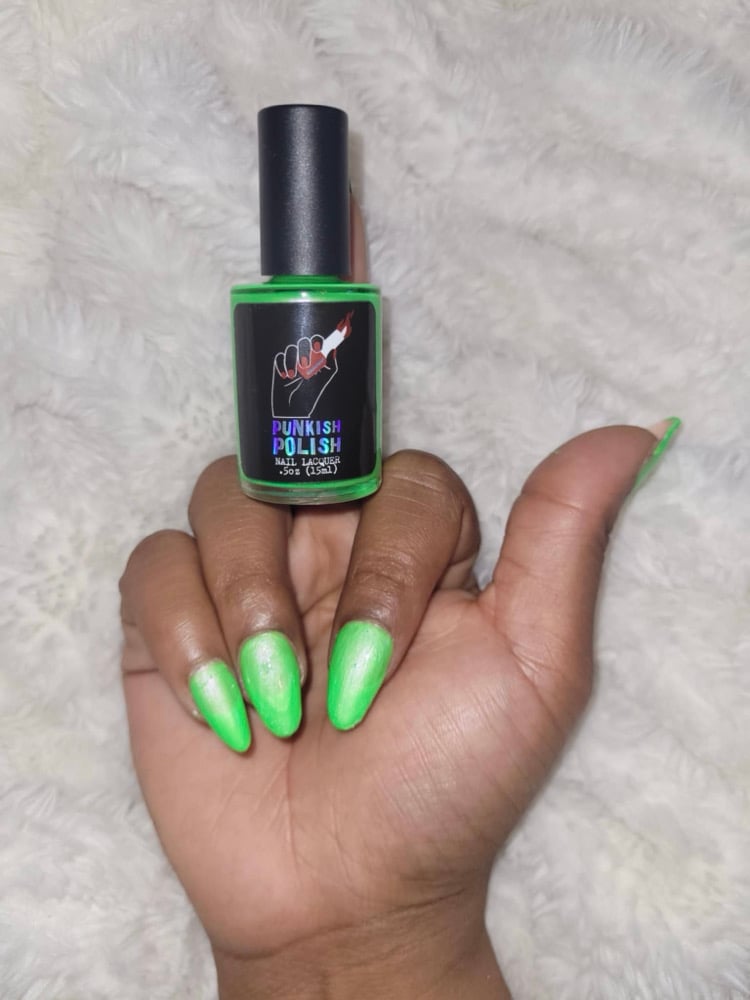 Amoeba is a bold neon green creme with a gentle light blue shimmer.