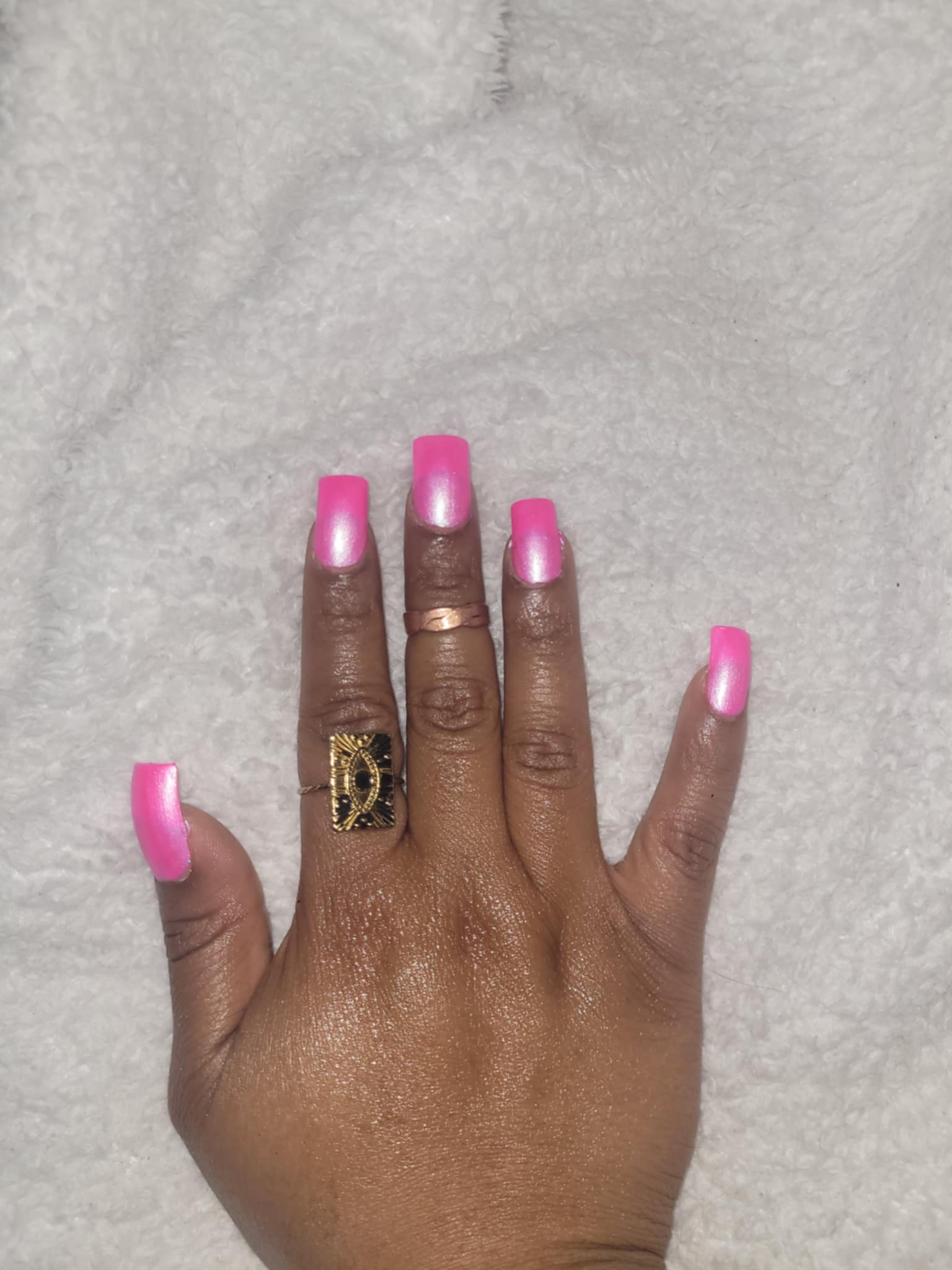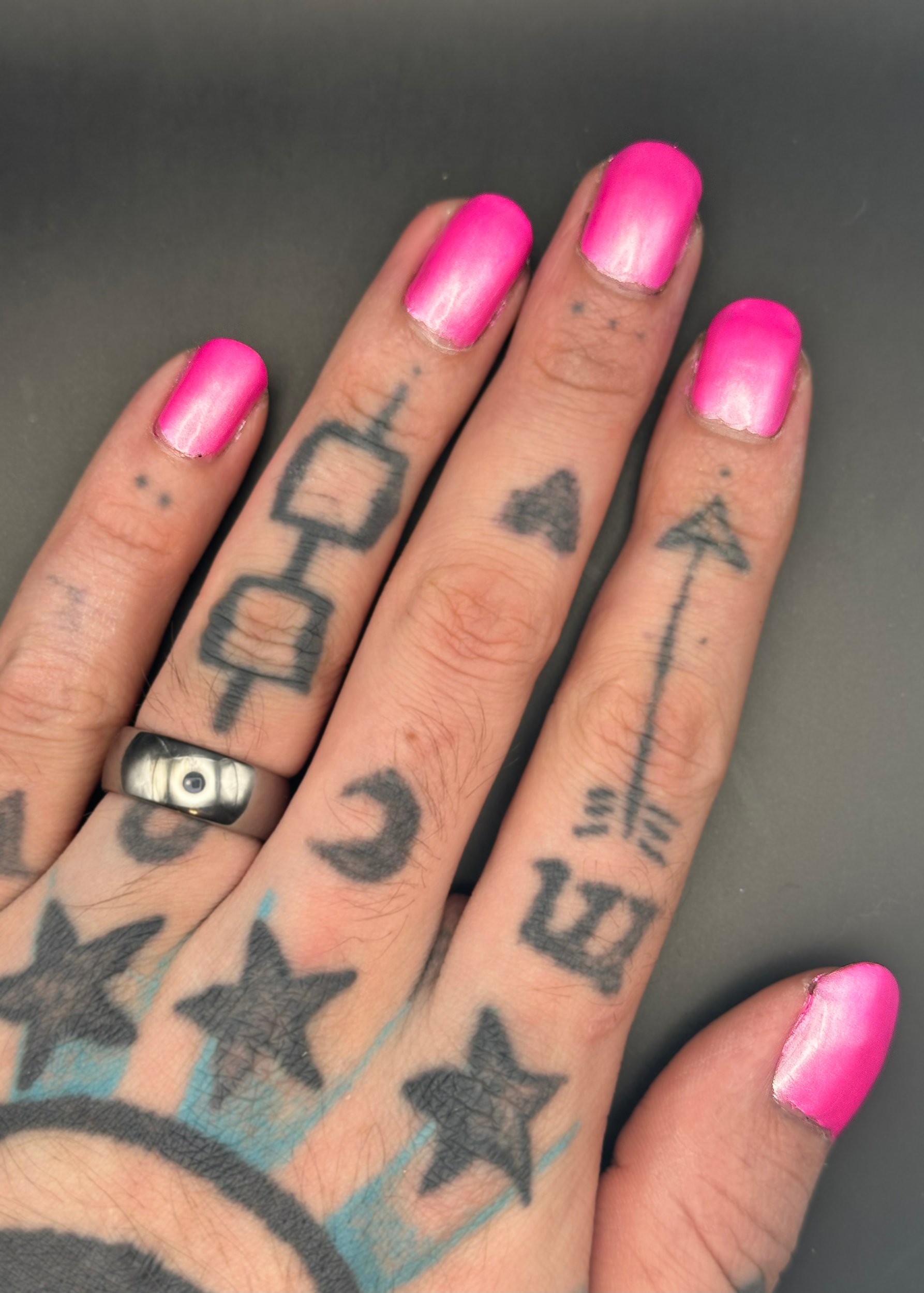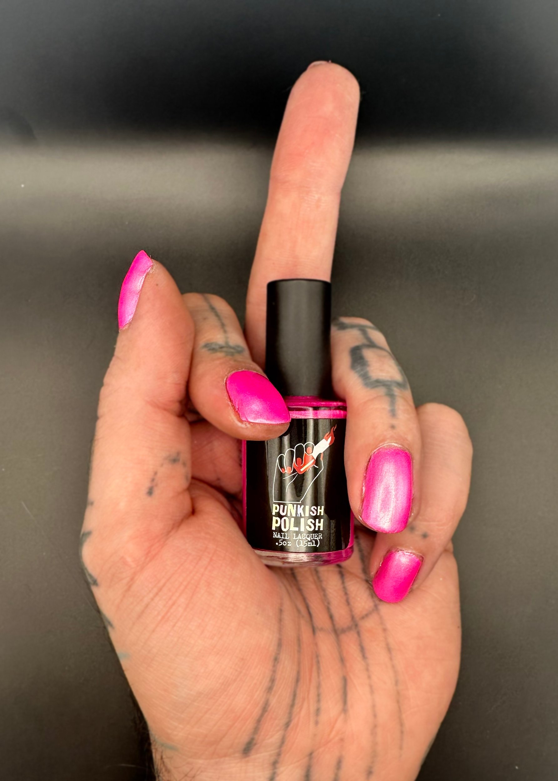 Cute Without the 'E' is a searingly bold neon pink creme with a gentle teal shimmer.