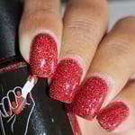 Famous Last Words is a sparkling blood red glitter with scattered holo shifts.