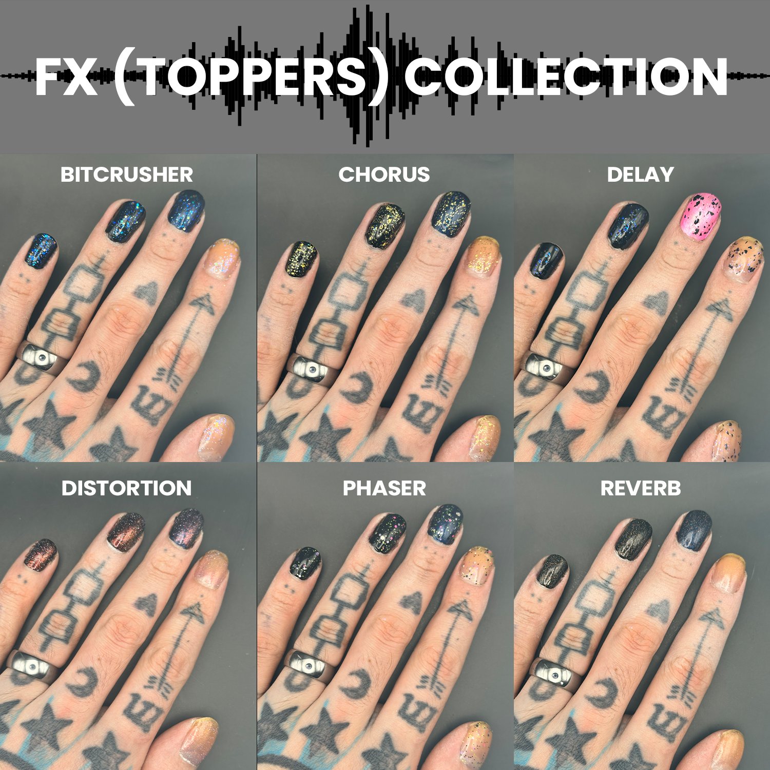 Includes the entire FX (Toppers) collection (7 polishes) at a 10% discount-