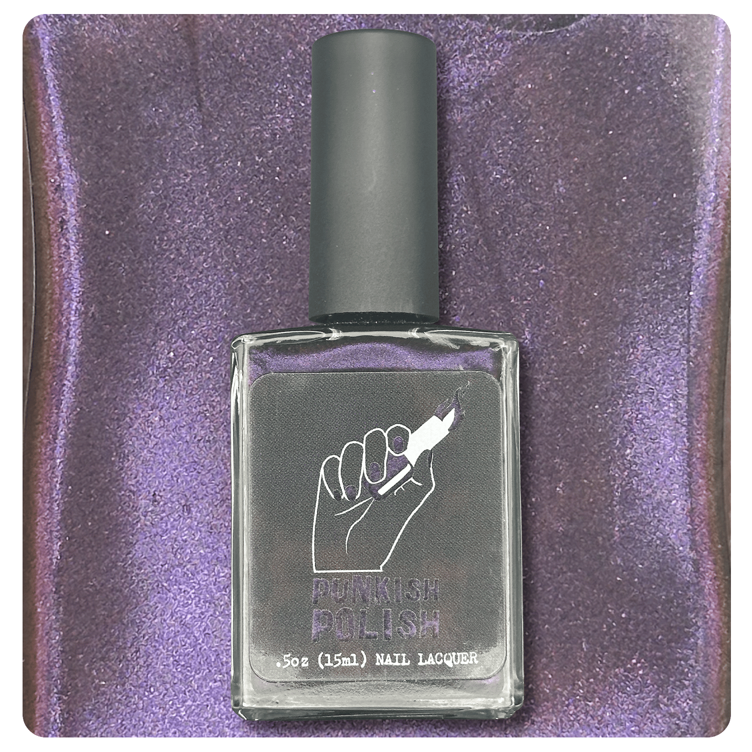 Long Nights is a purple shimmer polish that shifts red and orange depending on the light.