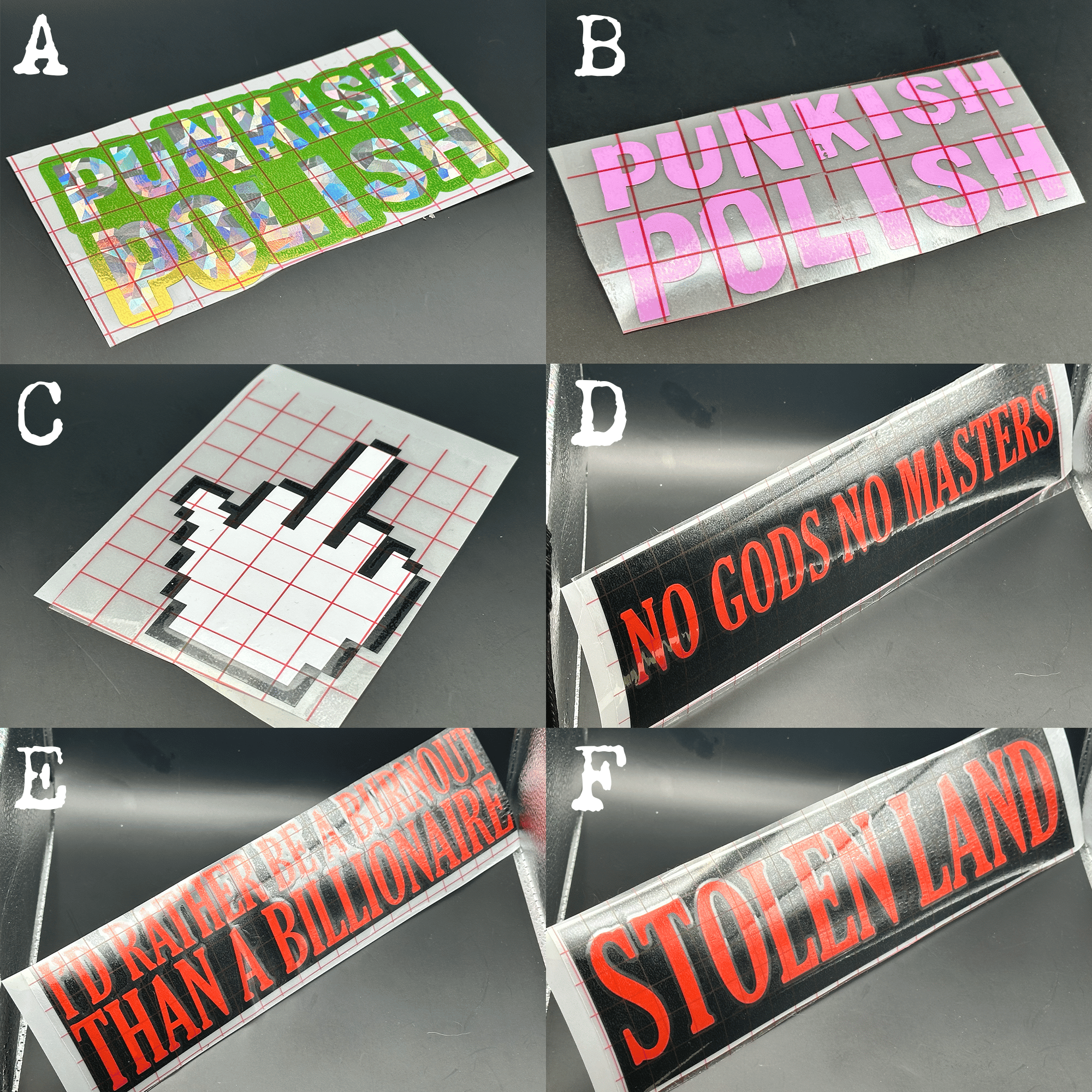 There's been a mishap at the Punkish Polish factory - I bought a bunch of vinyl and made a shit ton of decals I'll never use!